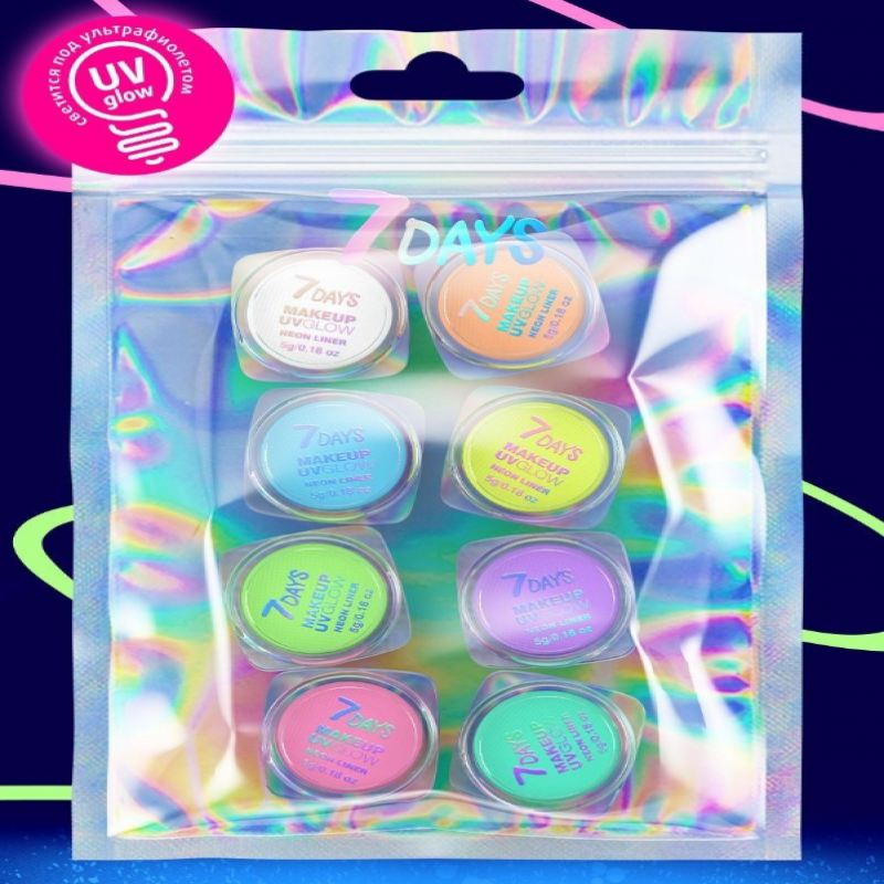 7DAYS Лайнер для глаз/Жидкая подводка светящаяся/Набор MY BASIC UVglow Neon Pastel/01 Candy, 8 шт.