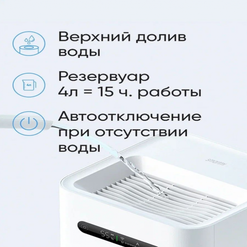 Доп. опции увлажнителяАвтовыключение; Автоматическое отключение без воды