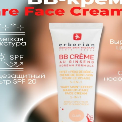 Многофункциональный BB Cream Clair 5 в 1 для воссоздания эффекта кожи младенца. Легкая, шелковистая, тающая текстура окутывает кожу мягкой вуалью, скрывает несовершенства и создает эффект естественно безупречной кожи. Благодаря комплексу с Корейским Женьшенем крем превосходно тонизирует и наполняет кожу энергией, корректирует тон кожи, маскирует недостатки, улучшает текстуру кожи, увлажняет и даже блокирует УФ-лучи, обеспечивая безупречную кожу. Гипоаллергенная формула подходит для всех типов кожи, даже для самой чувствительной.ВВ -крем для лица содержит ингредиенты центеллы азиатской, которые успокаивают чувствительную кожу, защищают кожу от влаги и корректируют тон кожи, не вызывая чувства стянутости.BB-крем "Абсолютная чистота" 5 в 1 SPF 20 Erborian BB Cream «Baby Skin» Effect Makeup - Care Face Cream 5 in 1 Nude с легкой текстурой и универсальным тоном выравнивает цвет лица, скрывает несовершенства кожи, дает невероятный эффект «кожи младенца», делает ее более мягкой, гладкой, бархатистой, матовой, не требует предварительного нанесения основы под макияж. Благодаря растительным экстрактам, жирным кислотам, полисахаридам, бетаину, крем обладает высокими уходовыми качествами, он интенсивно увлажняет и питает кожу, повышает ее тонус, замедляет процессы увядания. Мягкий солнцезащитный фильтр SPF 20 оберегает кожу от негативного влияния ультрафиолета,и,как следствие преждевременного фотостарения.Подходит для всех типов кожи.Применение: 1. Нанесите несколько капель BB крема на кожу лица. 2. Равномерно распределите и массируйте до тех пор, пока крем полностью не подстроится к вашему типу кожи. Крем покрывает кожу тонкой вуалью при соприкосновении с ней, при этом не забивает поры, позволяя коже дышать. 3. Результат: безупречная и идеально ровная кожа, мягкая и бархатистая, без эффекта маски.