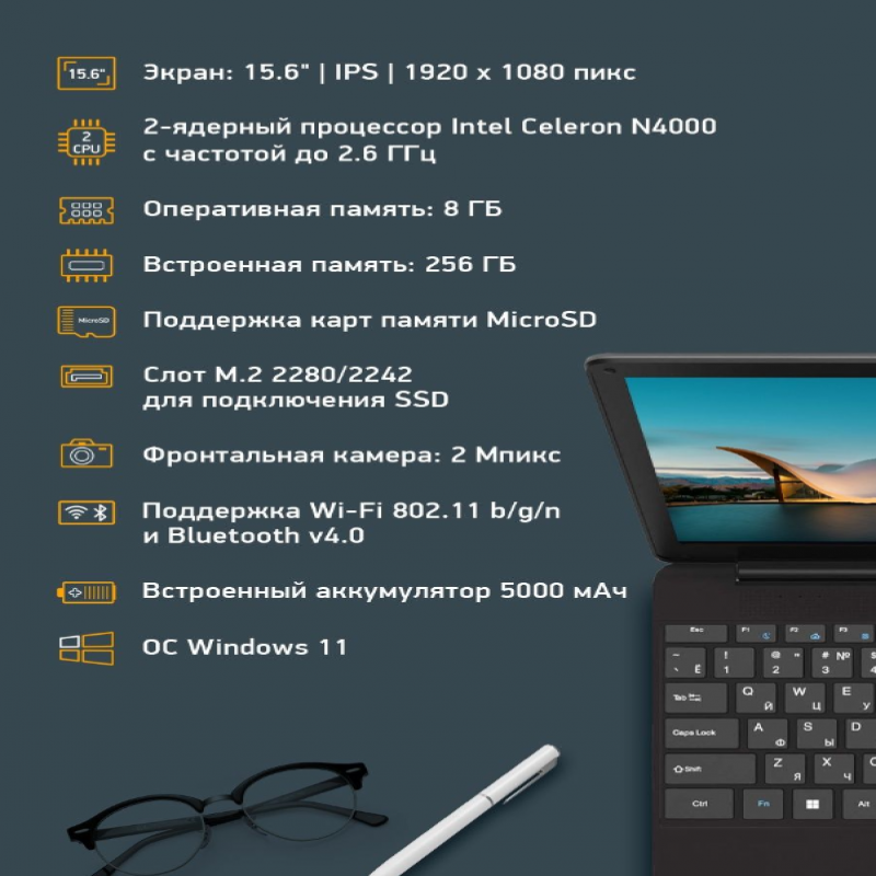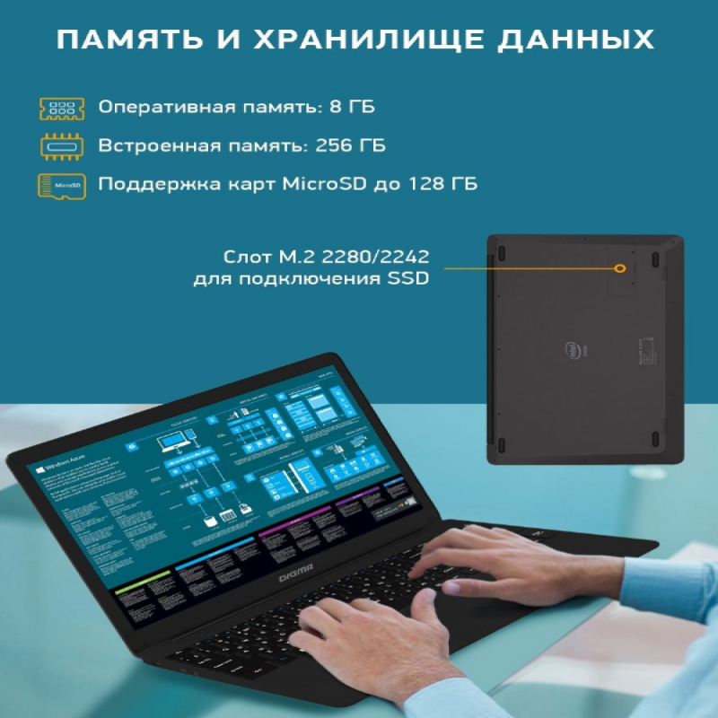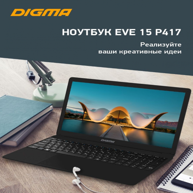 DIGMA Ноутбук 15.6" EVE 15 P417 Celeron N4000 8Gb SSD256Gb W11H