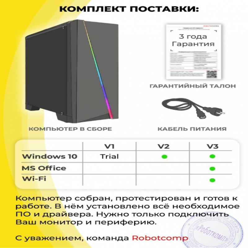 | Комплектация | 1 кабель питания; 1 - Системный блок; 1 - гарантийный талон |