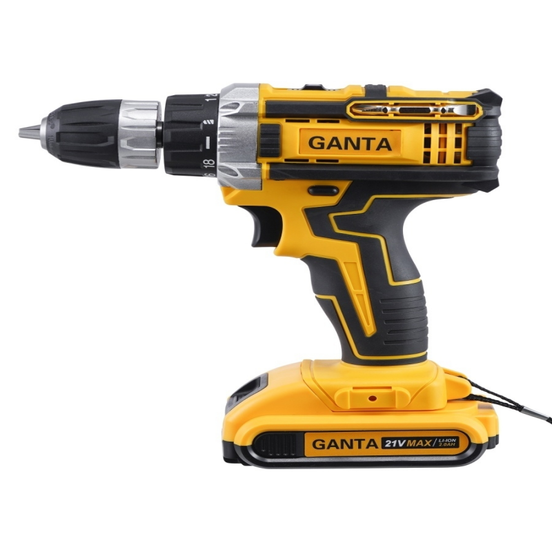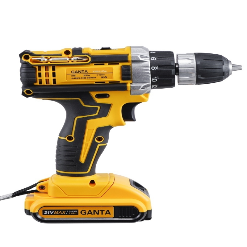 Дрель-шуруповерт аккумуляторный GANTA 2102LI Pro - это электроинструмент для строительства и ремонта, который окажется по вкусу любому хозяйственному мужчине. Шуруповерт станет отличным подарком, ведь он выполнен из прочного пластика, обладает стильным дизайном, имеет светодиодную подсветку рабочей зоны и нескользящую ручку. Эта дрель-шуруповерт является аналогом таких дорогих фирм как bosch, makita и metabo. Вы оцените по достоинству и удобный пластиковый кейс для хранения инструмента, и набор разнообразной оснастки, который идет в комплекте. К шуруповерту прилагаются два аккумулятора и мощное зарядное устройство с индикацией, которое заполняет батарею в течение всего 60 минут.Частота вращения составляет 1350 оборотов в минуту, что вполне достойно для такого шуруповерта.С помощью удобного переключателя вы сможете регулировать скорость вращения.Также имеется кнопка, запускающая реверс, которая находится прямо над курком, что несомненно, очень удобно.