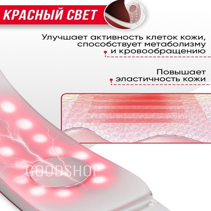 ПОДАРОК можно получить после покупки по запросу в разделе «Вопросы» или «Отзывы» под карточкой товара. В качестве подарка Вы получите подарочный сертификат на 2 онлайн-курса: от школы красоты «Идеальный пошаговый Nude» и от школы маникюра «От основ до секретов наращивания ногтей». Порадуйте себя и своих близких красивым макияжем и маникюром! Массажер для лица - отличный вариант для омоложения кожи. Массажер имеет фотоэффект, благодаря которому оказывает положительное и омолаживающее действие даже на сложную и проблемную кожу лица. Массажер для головы очищает лицо от прыщей, делает кожу подтянутой и визуально молодой. Массажер для шеи подтягивает кожу лица, устраняет легкие обвисания. Массажер для лица электрический действует на кожу EMS-микротоком, который не оказывает болевого эффекта, а действует на кожу лица приятно и комфортно. Для лица массажер позволяет регулировать угол наклона, благодаря чему удается достичь идеального прилегания устройства к коже. Массажер электрический излучает красный и синий свет. Благодаря красному свету микротоковый массажер для лица улучшает активность клеток кожи. Красный свет улучшает метаболизм и кровообращение. Аппарат для лица излучает синий свет для очищения кожи и усиливает впитывание косметических средств для ухода. Какая женщина не хочет оставаться всегда красивой? Для сохранения молодости прибегают к самым разным способам, мы же предлагаем массажер, с помощью которого уход за лицом станет простым и эффективным. Массажер для лица электрический воздействует на кожу, провоцируя ее на обновление клеток. Он поможет подтянуть овал лица, убрать второй подбородок, сделать скулы более выраженными, а кожа с ним будет долго оставаться молодой. Такой корректор для лица заменит роллер для лица, маски для лица тканевые, мезороллер для лица, гуаша тейпы для лица, гуаша скребок, тейп для лица и многие другие средства. Массажер использует микротоки для лица, что позволяет воздействовать на глубокие слои эпидермиса. Полезно его использовать после того, как была сделана маска для лица, он усилит ее полезный эффект, также принесет он пользу после нанесения различной уходовой косметики. Например, можно использовать любимые и популярные средства, такие как ретинол для лица, гиалуроновая кислота для лица. Скульптор для лица работает быстро, безопасно, потягивает кожу, делает ее более эластичной, упругой, возвращая тургор. При использовании массажера можно делать пилинг для лица обычный или кислотный, они помогут быстрее обновиться верхнему слою эпидермиса. Увлажняющая сыворотка для лица, используемая совместно с нашим массажером, будет действовать куда как лучше, проникая глубже в кожу и интенсивнее ее увлажняя. Можно использовать также масло для лица, косметику серии антивозрастной уход и многое другое. Простой в использовании массажер зарекомендовал себя только с лучшей стороны и доказал свою эффективность. Микротоковый массажер для лица действует деликатно, безопасен для глаз. Категория: микротоки массажер для лица, массажер для лица и шеи, массажер для лица микротоковый, электрический массажер для лица, лифтинг массажер для лица, массажер для лица электрический с микротоками, уход за лицом профессиональный. Массажер для лица - это оригинальный женский подарок (сюрприз) маме, девушке, жен