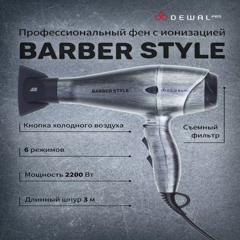 Фен для волос профессиональный с ионизацией и 2 насадками - сопло. Profile - обладает маневренностью и большой мощностью и поэтому идеально подходит для работы в салоне. Благодаря универсальному размеру фен для волос подходит как для женской, так и для мужской руки. Ручка фена для волос немного отклонена назад, что улучшает эргономику при работе. Сопла скошенной формы существенно увеличивают скорость воздушного потока, а также помогают сделать процесс укладки волос более комфортным. Воздушный фильтр легко снимается для чистки. Технические характеристики профессиональных парикмахерских инструментов: мощность 2200 Вт; система ионизации; вес 600 гр; 6 режимов работы; кнопка холодного воздуха; 2 сопла; сетевой провод 3 м. Преимущества фенов для сушки укладки от DEWAL: Мощный мотор - до 8 часов непрерывной работы; Высокая скорость воздушного потока. Защита от перегрева Stop-heat. Защитный механизм на нагревательном элементе фена охлаждает корпус, сохраняет мотор, защищая его от перегрева, а также поддерживает оптимальную температуру для волос. Дополнительно к фену для волос вы можете приобрести насадку диффузор арт. 12846419.