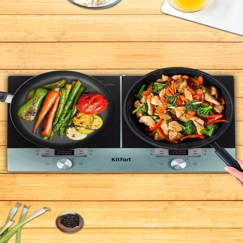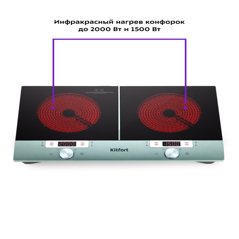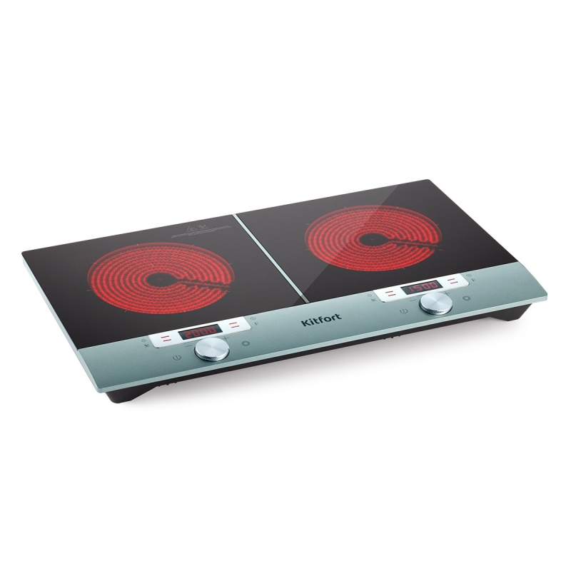 Плита КТ-155 выполнена в пластиковом корпусе с рабочей поверхностью из стеклокерамики и обладает максимальной мощностью 2000 Вт. На низких уровнях мощности регулировка мощности осуществляется плавнее, чем у обычных плит, ступеней мощности здесь больше. В отличие от индукционных плит инфракрасная плита не имеет импульсного режима. Нагрев происходит постоянно даже на минимальных мощностях. Инфракрасная плита позволяет легко жарить блины и готовить практически любые блюда на любой посуде, в том числе на тонких алюминиевых сковородах. Рекомендуемый диаметр дна составляет 12-26 см, хотя возможно использовать посуду и других диаметров, вплоть до 7 см. Посуду с маленьким диаметром дна рекомендуется ставить в центр зоны нагрева. Плита КТ-155 выдерживает вес не более 10 кг. Инфракрасная плита поможет сделать жизнь вашей семьи и здоровой и принесет чистоту на вашу кухню.