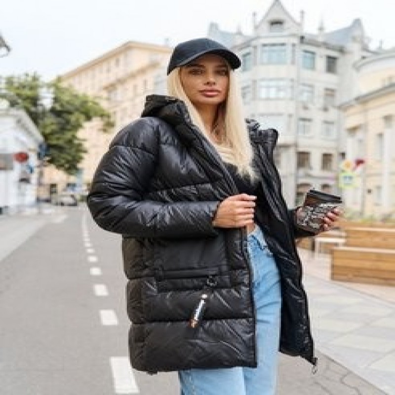Куртка зимняя женская оверсайз больших размеров с капюшоном