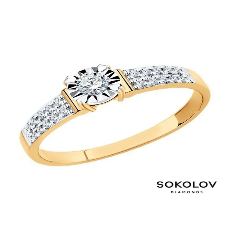 Женское золотое кольцо с бриллиантами. Стильное дизайнерское кольцо отлично подходят для повседневной носки, а также эффектно дополнят нарядный, вечерний, праздничный или свадебный образ. Современные ювелирные изделия легко сочетаются с любой одеждой. Украшения SOKOLOV (Соколов) приходят в комплекте с подарочной упаковкой, идеально подходят для подарка любимой женщине, девушке, девочке на День рождения, Новый год, 8 марта, день всех влюбленных (14 февраля) или любой праздник, и повод. Значение веса на фото и в характеристиках являются примерными и могут отличаться от фактического. Изделие выполнено из красного золота 585 пробы; вставка: бриллиант; Характеристики: 1 Бр Круг 57 2, 702, 80 0, 083 3/6 А, 12 Бр Круг 17 0, 901, 00 0, 046 2/3 А, 8 Бр Круг 17 0, 80*0, 90 0, 024 2/3 А. Свернуть описание