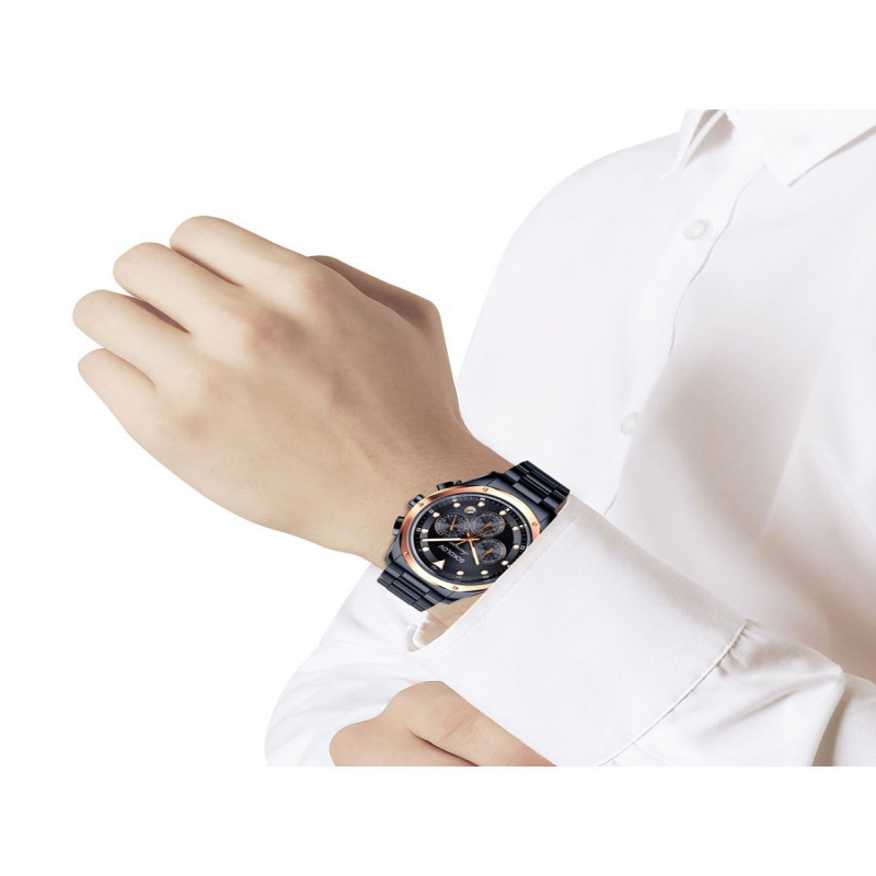 Часы мужские стальные коллекция My world Searacer. Корпус, задняя крышка, браслет нержавеющая гипоаллергенная сталь 316L, корпус с IP покрытием цвета Rose Gold, корпус и браслет с IP покрытием цвета Black, кварцевый японский механизм с функцией хронографа и указателем даты TMI (Seiko) VD53, стекло минеральное. Водонепроницаемость 5 АТМ. Диаметр корпуса 43 мм, высота корпуса 10,4 мм, ширина браслета 22 мм. Гарантия 1 год с момента покупки.
