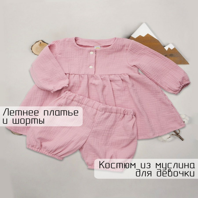 | Назначение | Туника пляжная для новорожденных с шортами; Платье для новорождённой девочки муслин; Костюм для девочки в подарок муслиновый |
