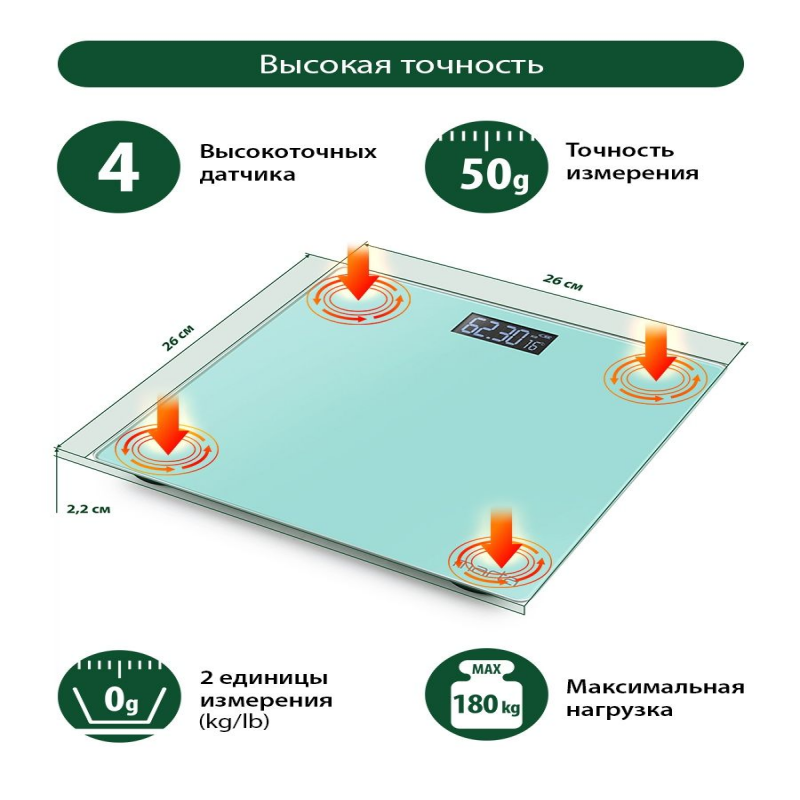 | Комплектация | Весы электронные напольные; Гарантия 1 год, инструкция; батарейки ААА (1,5 В) - в подарок! |