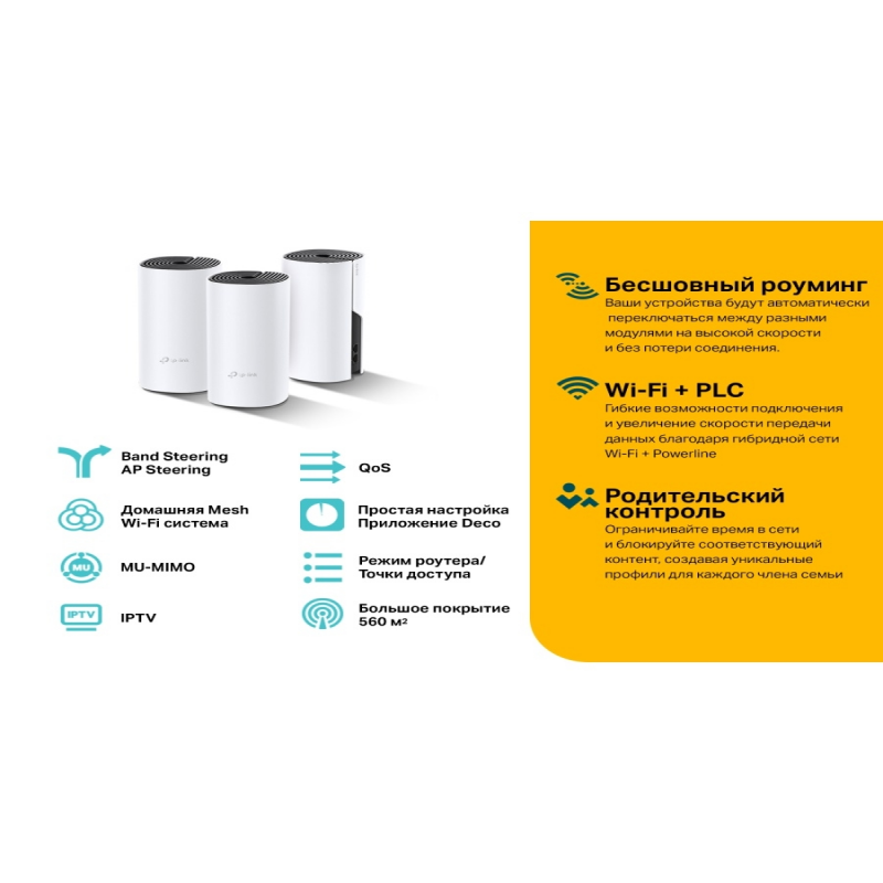 Deco P9 сочетает в себе двухдиапазонный Wi-Fi и Powerline для более стабильной Mesh-сети.Технология Powerline использует электропроводку вашего дома для более стабильного соединения между устройствами Deco,преодолевая стены и прочие преграды, мешающие прохождению сигнала, что позволяет увеличить скорость сети ещё большеи получить поистине бесшовное покрытие.